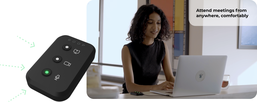 Boop's LED status indicator works both ways - whether you use Boop or on-screen meeting controls